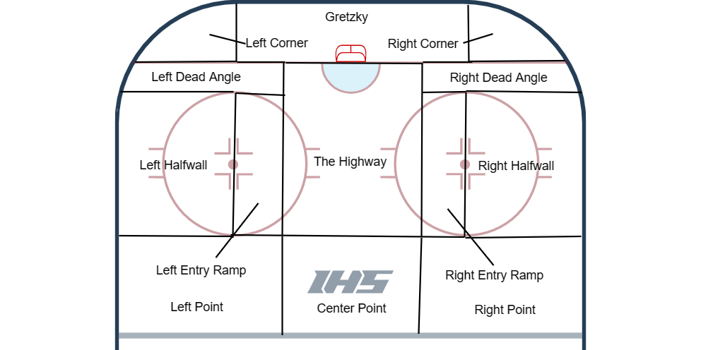 The Corner - It goes without saying that the corners are in the corner of the ice below the goal line. This is primarily a playmaking and puck recovery spot.